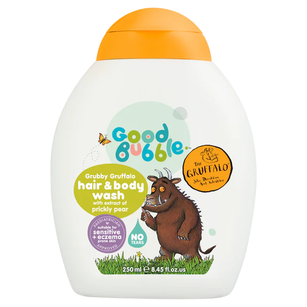 Κατάλληλο για νεογέννητα και άνω. Το Gruffalo Αφρόλουτρο για Μαλλιά & Σώμα είναι εμπλουτισμένο με πραγματικό εκχύλισμα φραγκόσυκου και περιέχει τουλάχιστον 98% φυσικής προέλευσης συστατικά για να θρέφει τα παιδικά μαλλιά και να διατηρεί τη φυσική υγρασία του δέρματος.